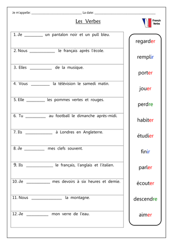 French Verb Exercises Printable Free French Worksheets Online